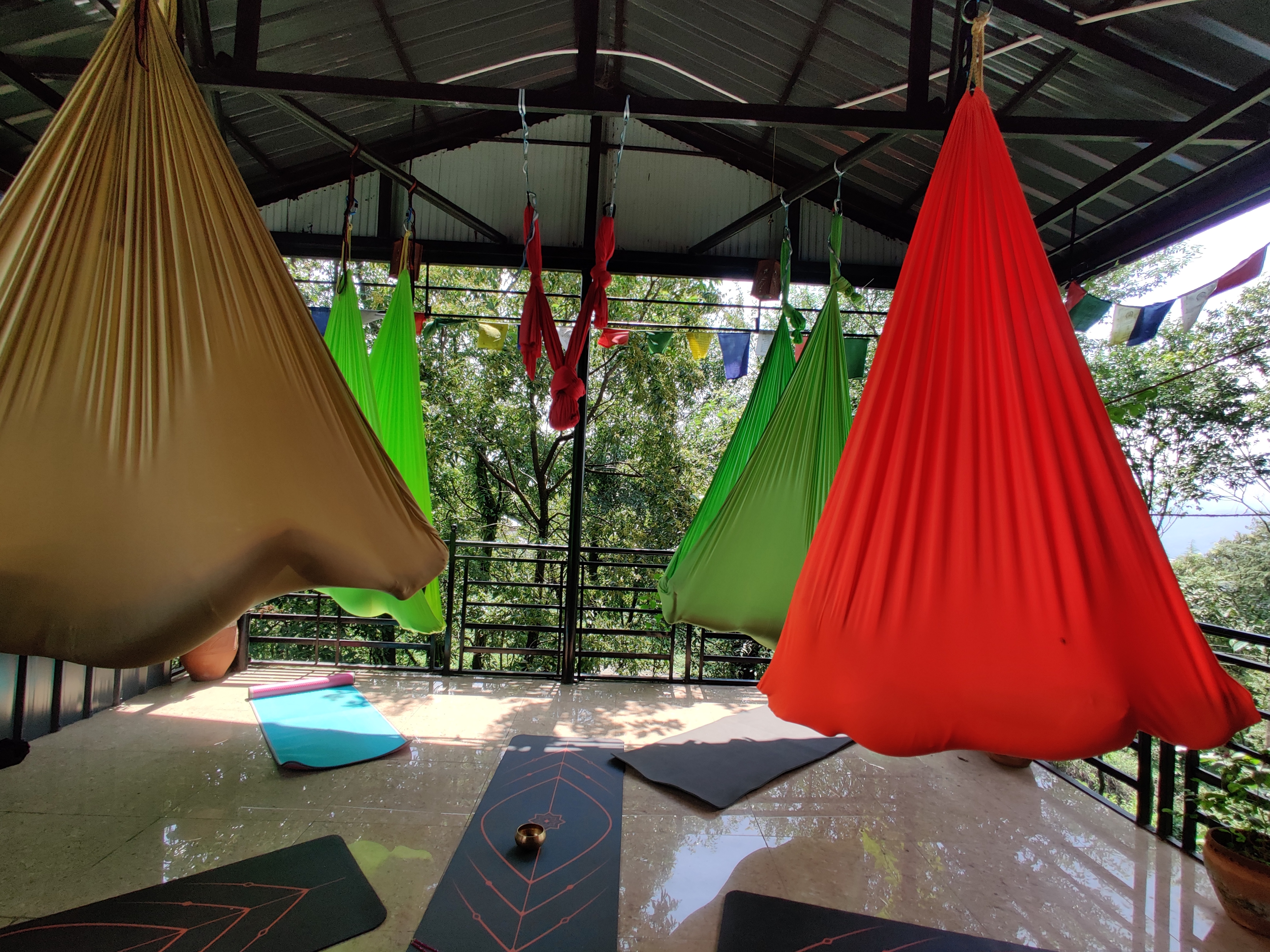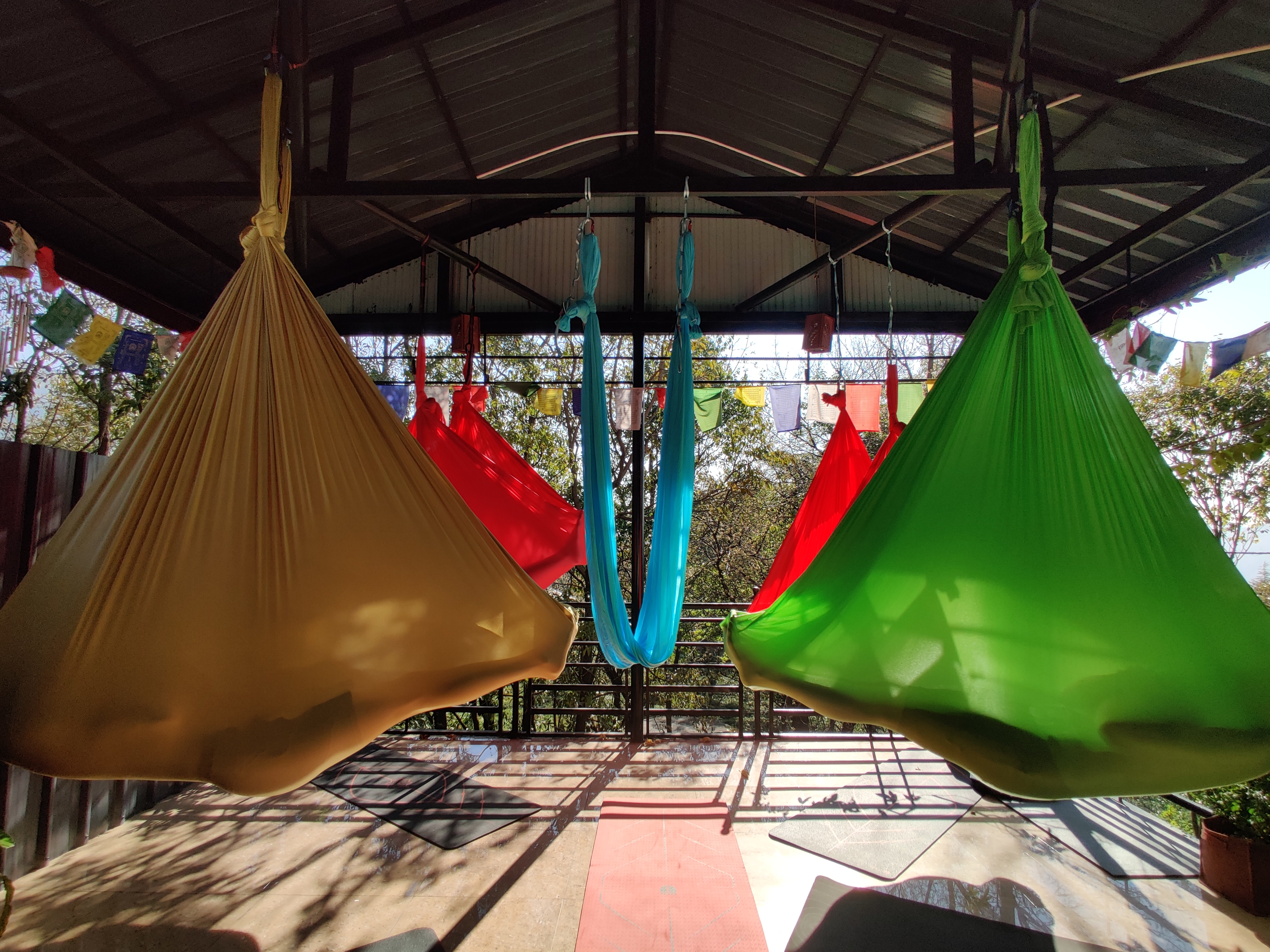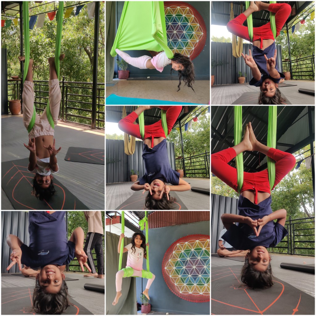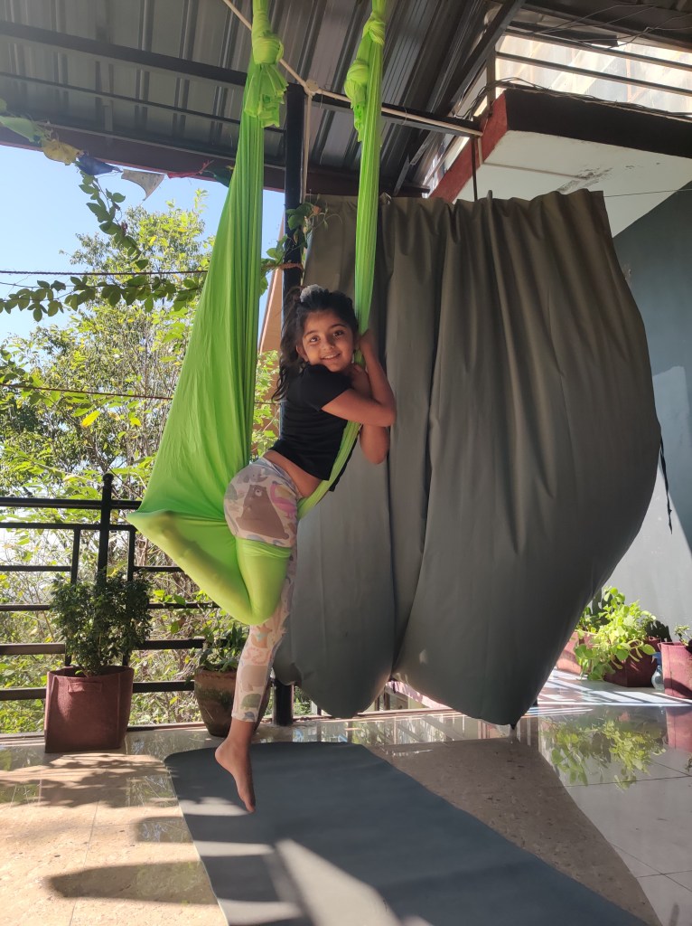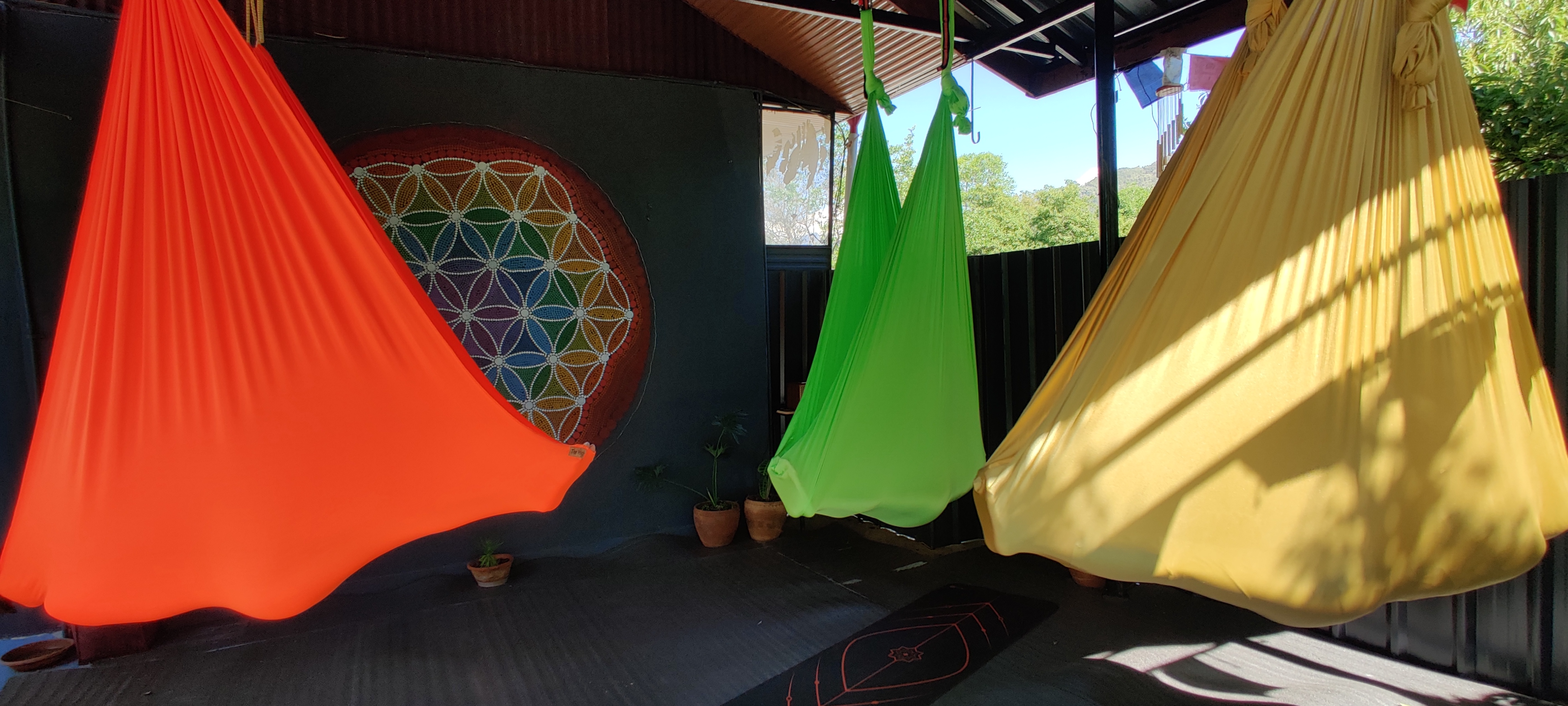 A beginners’ session is an introduction to the Aerial hammock, basic safety briefing, lock and grip systems, warm-up and few Yoga poses on the hammock.