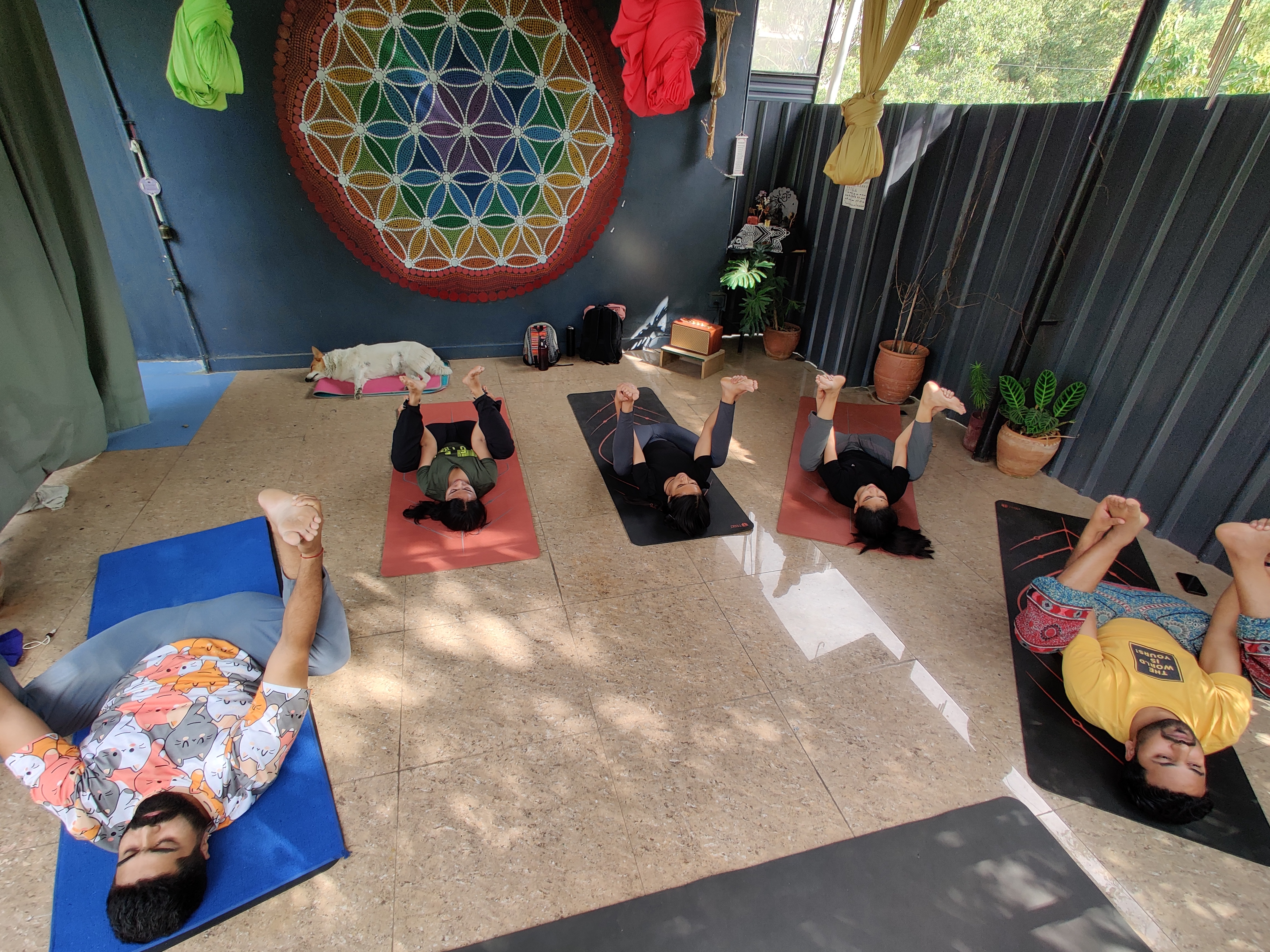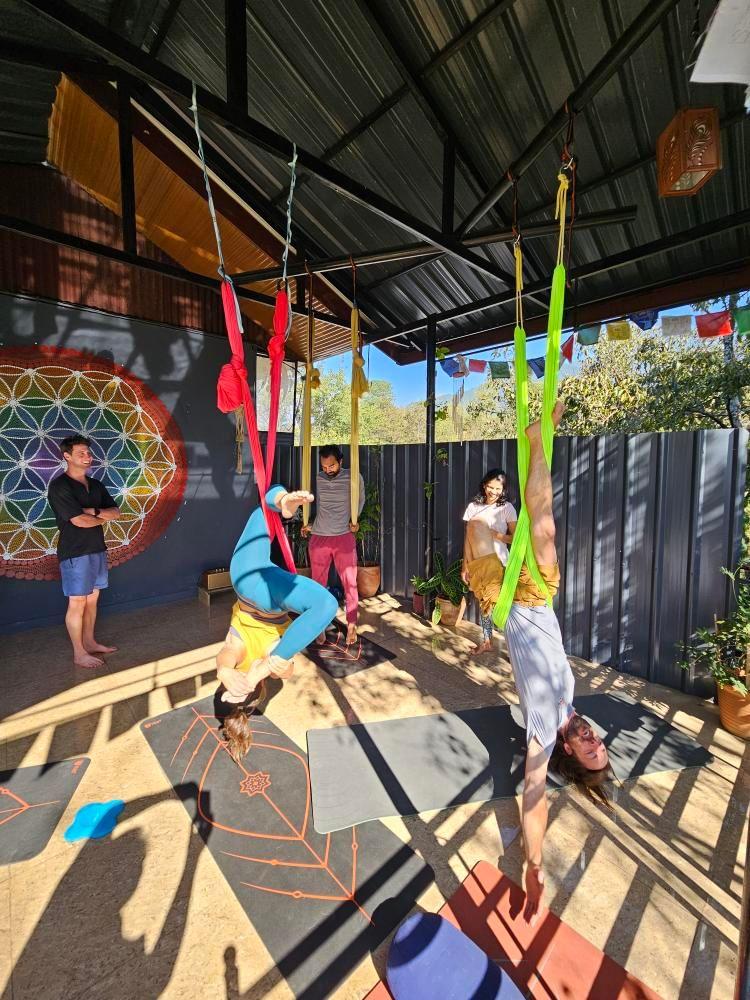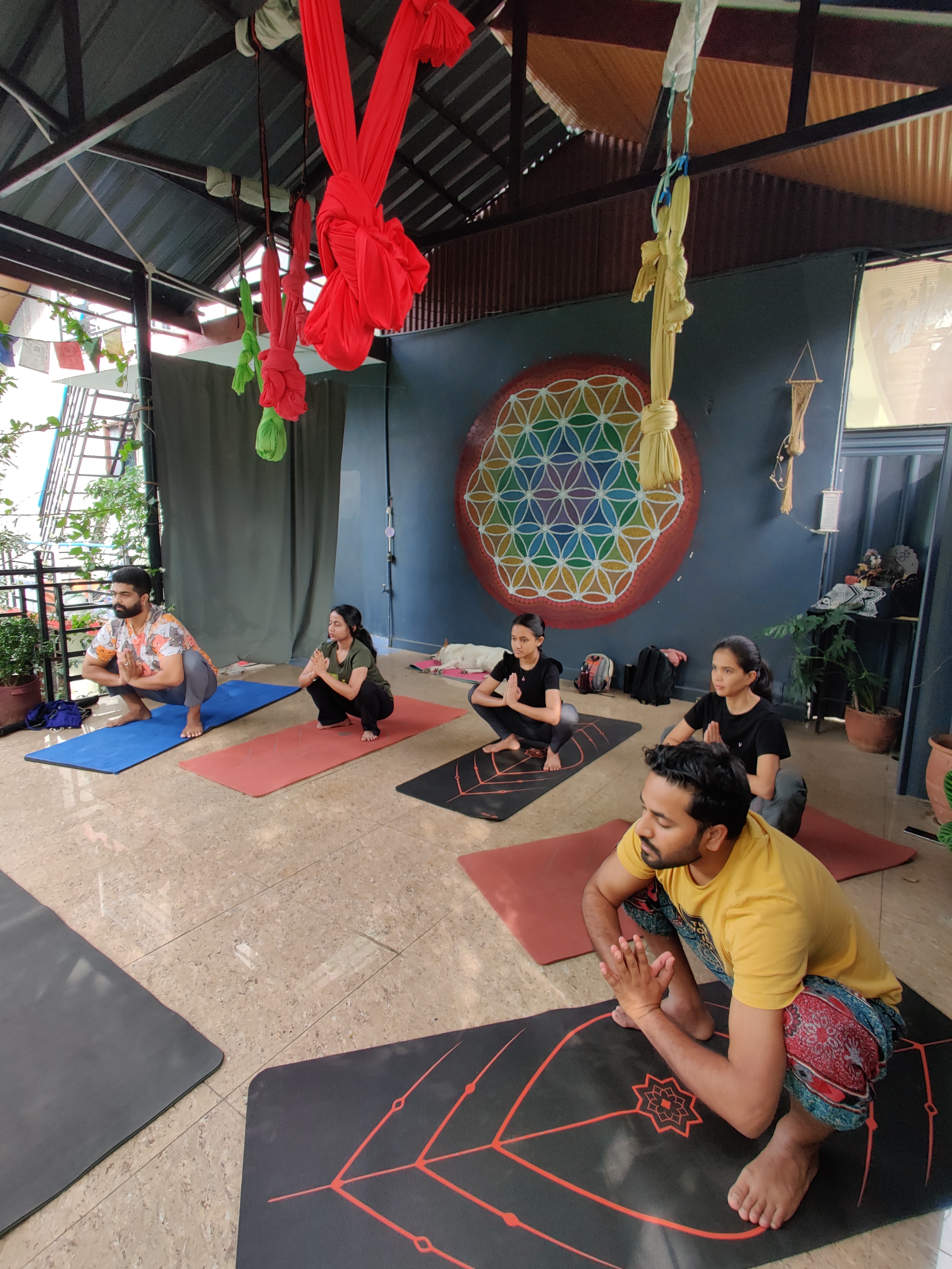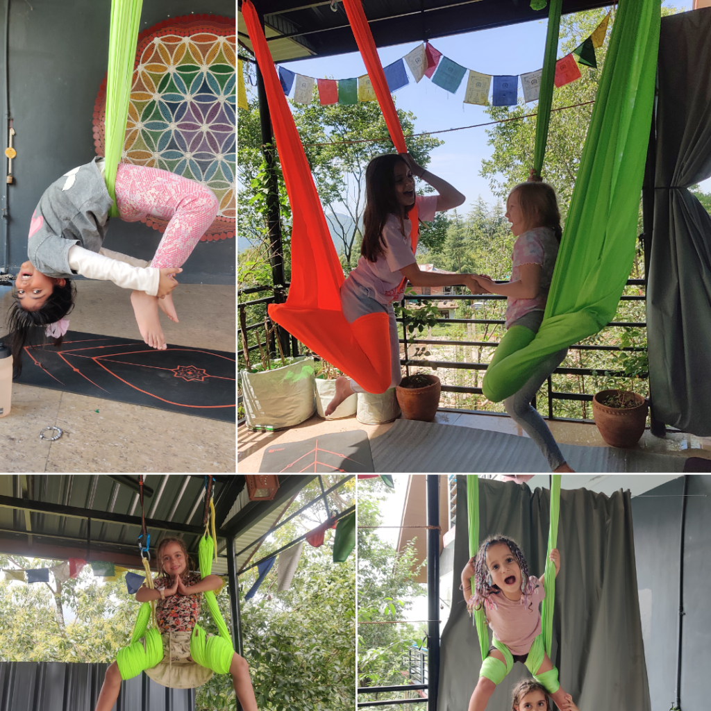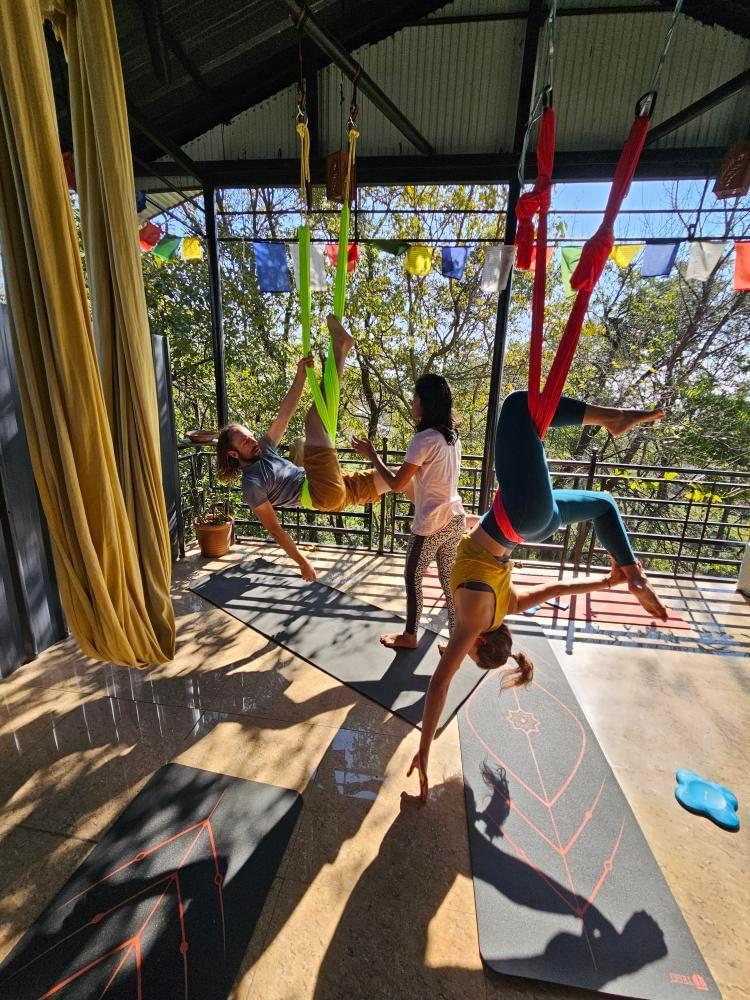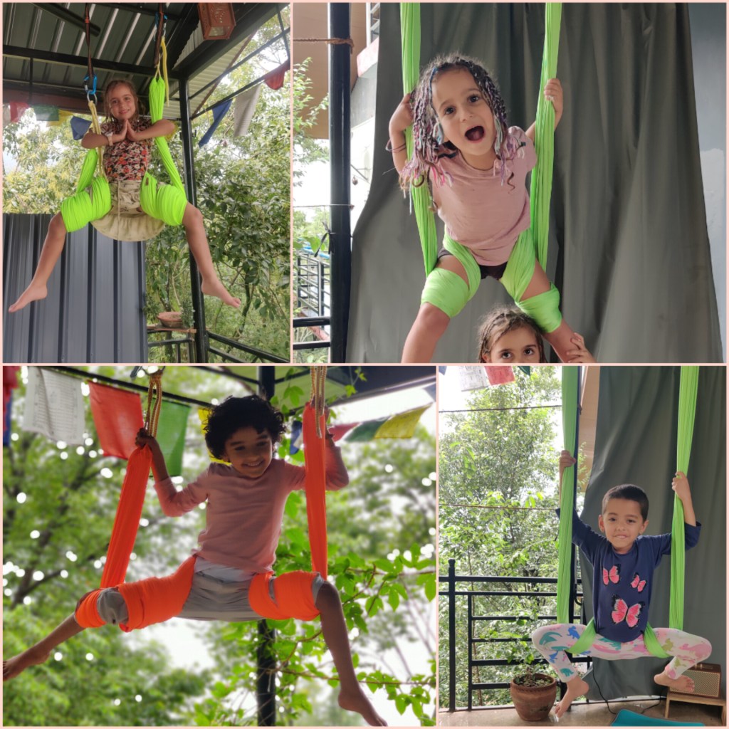 A beginners’ session is an introduction to the Aerial hammock, basic safety briefing, lock and grip systems, warm-up and few Yoga poses on the hammock.