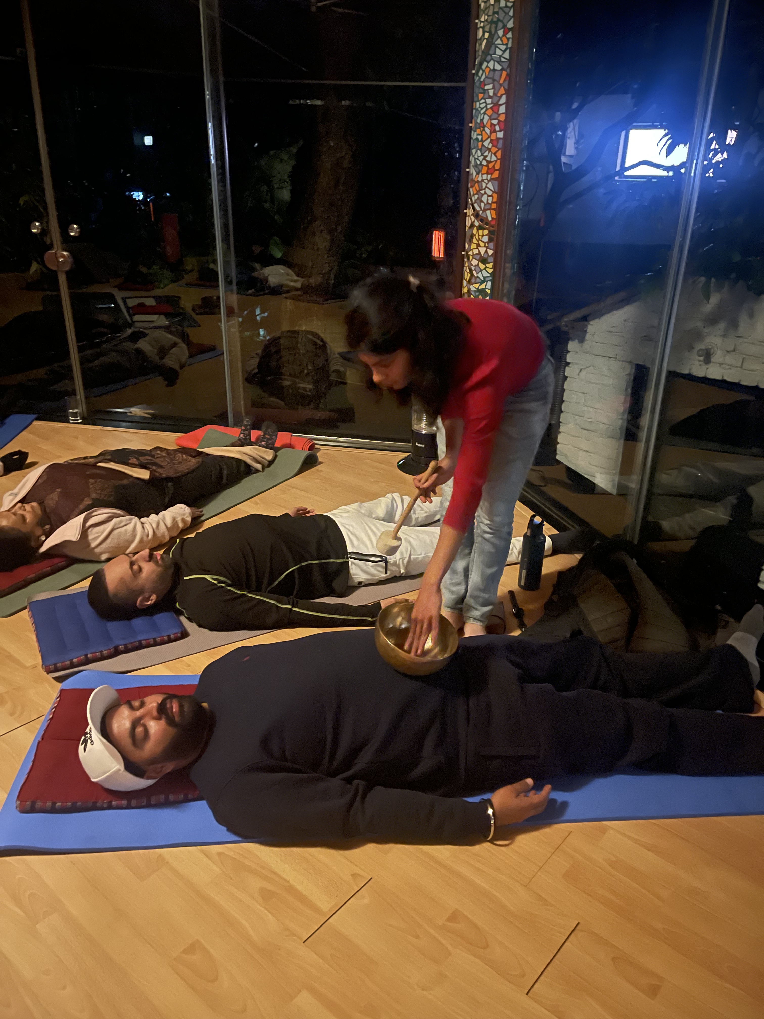 - 45 minutes session | The Suspended sound bath is ₹1200 per session per person | The floating sound bath is ₹ 2000 per person (min, 5 people)