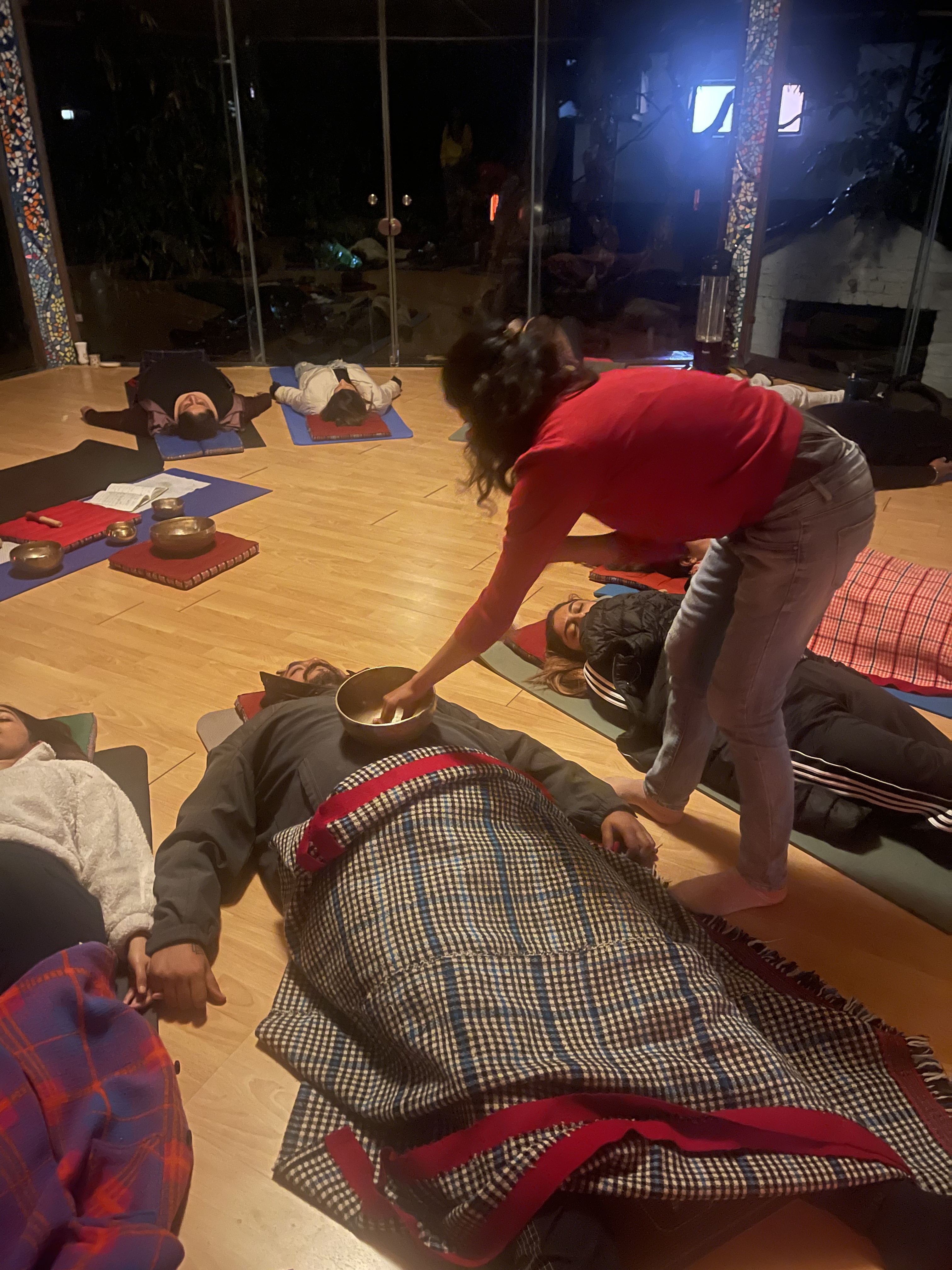 In this sound immersive session, You will be sitting or laying on the floor and I will be playing sounds with Tibetan singing bowls, other instruments and frequencies. You will feel the vibrations & other healing frequencies resonate through your body like ripples in the water.